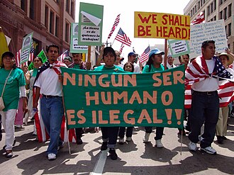 [edit]| DescriptionMay Day Immigration March LA04.jpg | Members of the South Central Farm attending the immigrant rights march for amnesty in downtown Los Angeles California on May Day, 2006. The banner, in Spanish, reads "No human being is illegal". |